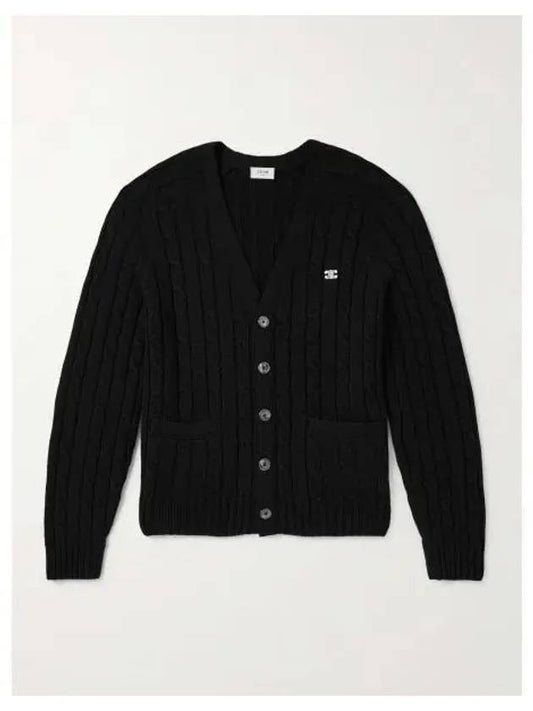CELINE Triomphe Embroidered Cable Knit Cashmere Cardigan Black