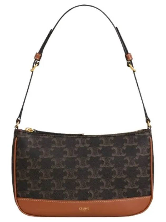CELINE Triomphe Canvas Calfskin Shoulder Bag Tan