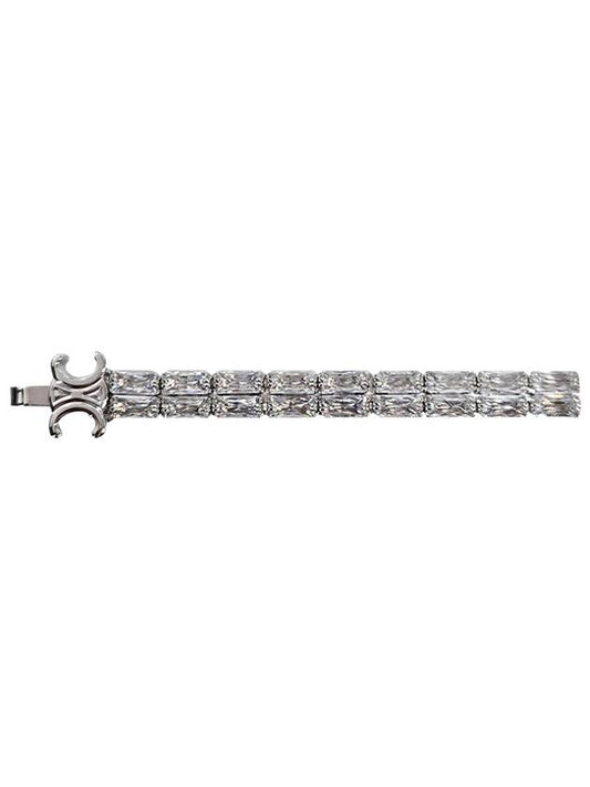 CELINE Le Soir Strass And Brass With Rhodium Finish Hair Slide Silver