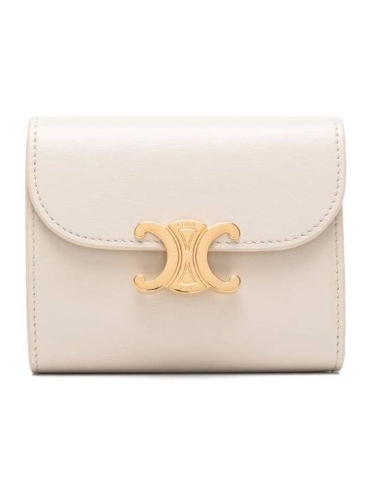 CELINE Triomphe Small Shiny Calfskin Bicycle Wallet Pale Beige