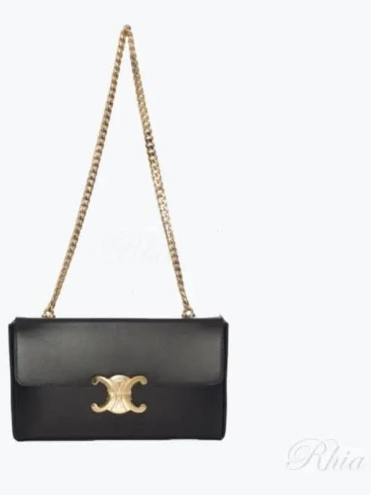 CELINE Triomphe Shiny Calfskin Flap Card Wallet Black