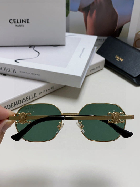 Celine TRIOMPHE SUNGLASS 497821 IN GOLD METAL DARK TEAL LENSES