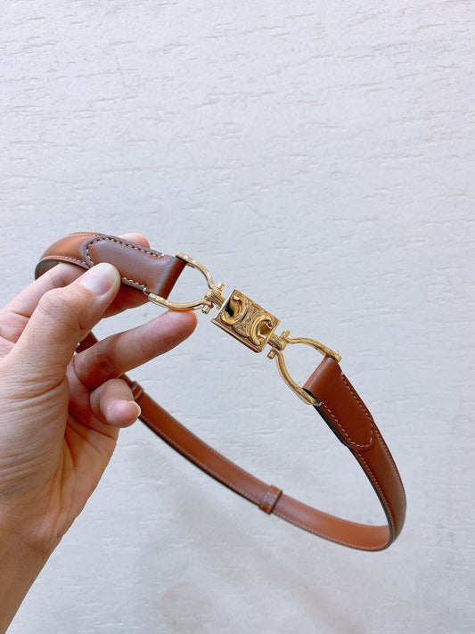 Celine CL TRIOMPHE 25 MM BELT IN PENNY BROWN CALFSKIN GOLD HARDWARE