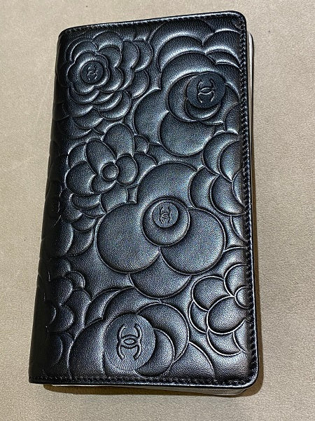 Chanel Black Bifold Distressed Vinyl Long Wallet