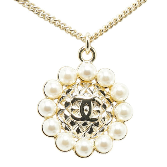 Chanel Coco Mark Chain Necklace Gold Plated Pearl