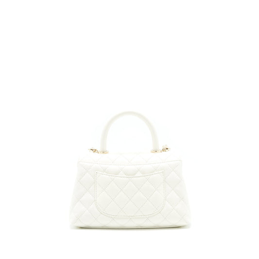 Chanel Small Coco handle Caviar White LGHW (microchip)
