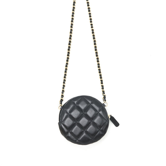 Chanel mini Round Camellia zippy Wallet with Chain Lambskin black GHW