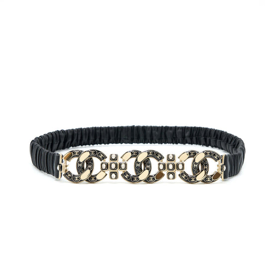 Chanel Detail CC Logo Free Size Leather Belt Black With Light Gold Tone