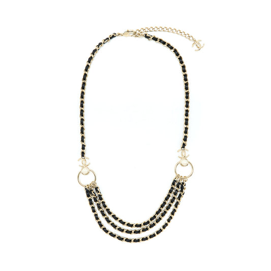 Chanel Waist Chain Belt Leather Chain/CC Logo Drop Light Gold Tone