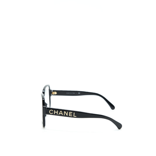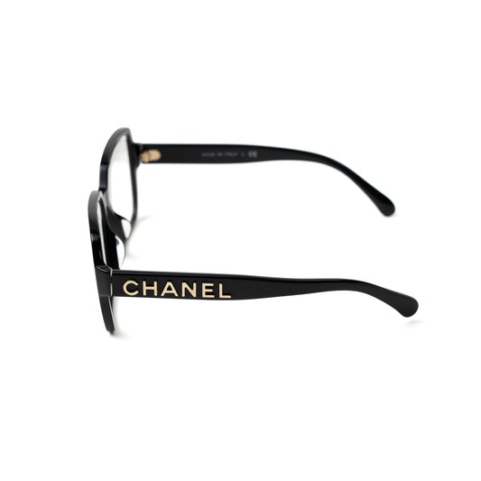 Chanel Square Glasses Frame With Letter Black Light Gold Tone