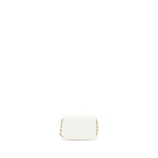 Chanel 21B Card Holder On Chain Caviar White LGHW