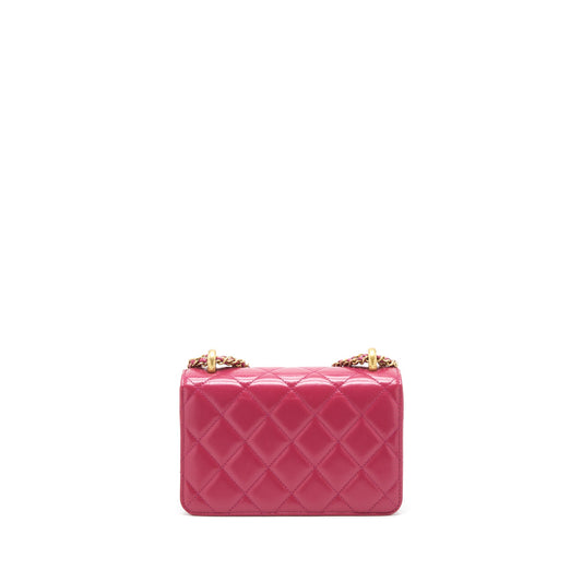 Chanel 21A Small Gold Crush Flap Bag With Chain Calfskin Raspberry Pink GHW (Microchip)
