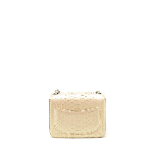 Chanel Mini Square Flap Bag Python Iridescent Light Beige SHW