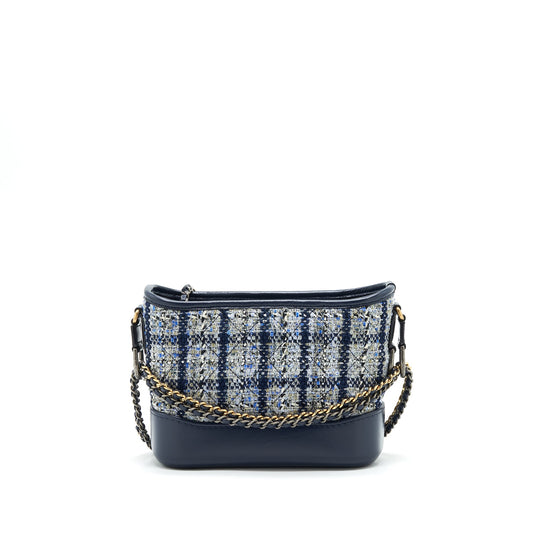 Chanel Small Gabrielle Hobo Bag Tweed Blue With Multi Colour Hardware