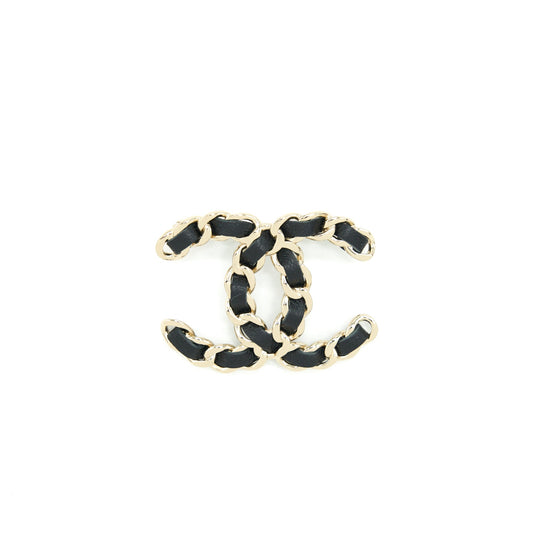 Chanel CC Logo Leather Chain Brooch Black LGHW