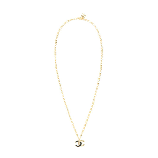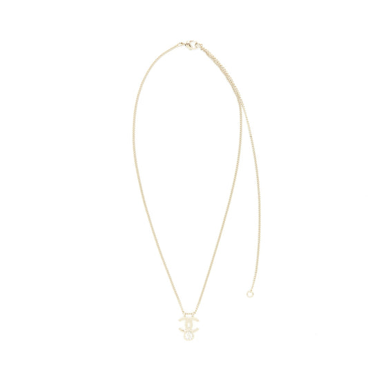 Chanel CC Logo And Crystal Necklace Light Gold Tone