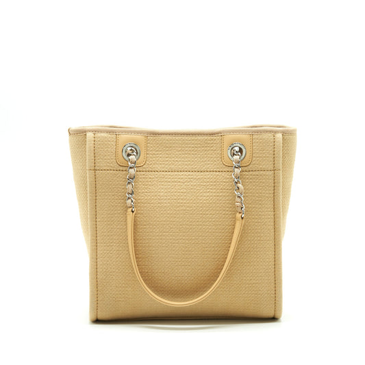 Chanel Deauville PM Chain Tote Bag Canvas Dark Beige SHW (Microchip)