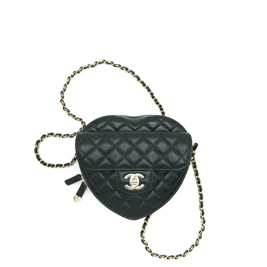 Chanel 22S Heart Bag Lambskin Black LGHW (Microchip)