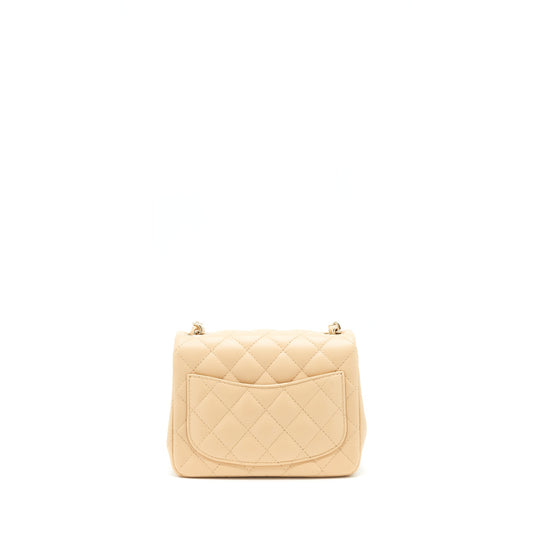 Chanel 22C Mini square flap Bag Lambskin beige LGHW(Microchip)