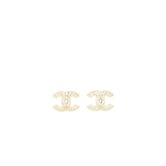 Chanel CC Logo Crystal Earring Light Gold Tone