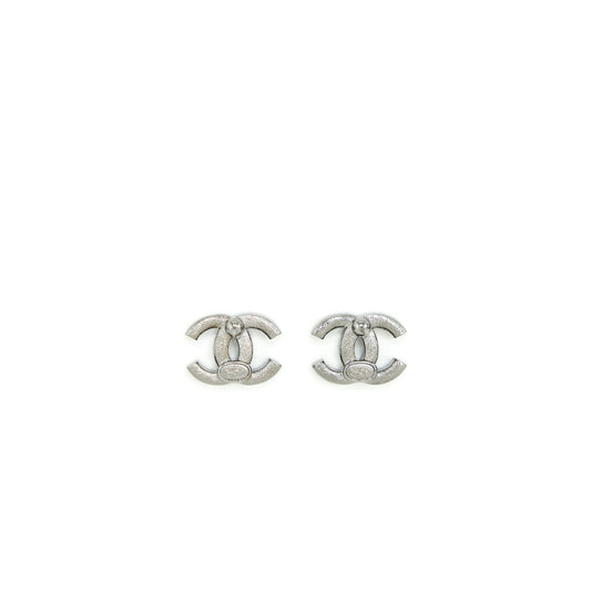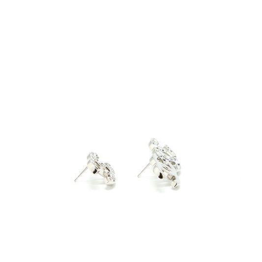 Chanel CC Logo Earrings With Crystal Sliver Tone