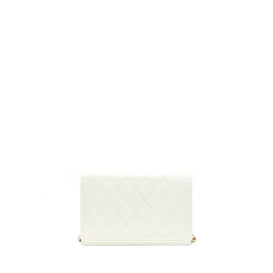 Chanel Boy Wallet On Chain Caviar White LGHW (Microchip)