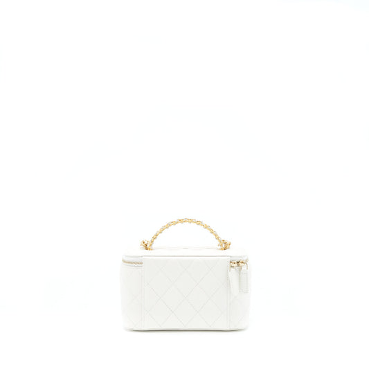 Chanel 22S Logo Top Handle Long Vanity Caviar White GHW