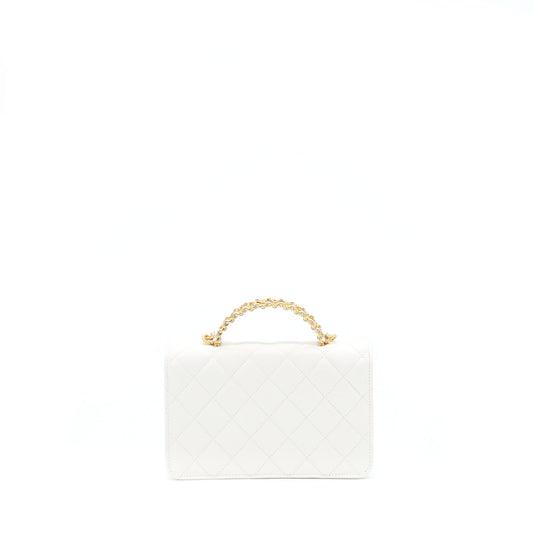 Chanel 22s Logo Top Handle Wallet On Chain Caviar White GHW