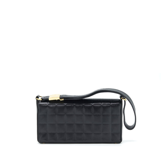 Chanel Vintage Chocolate Bar Flap Shoulder Bag Lambskin Black GHW