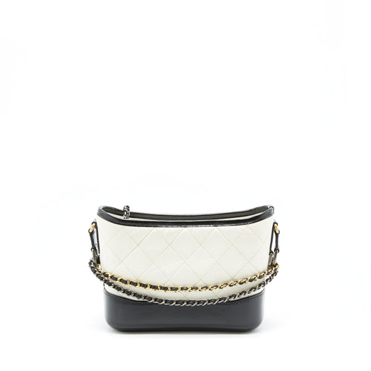 Chanel small Gabrielle hobo bag calfskin white/ black with multicolour hardware
