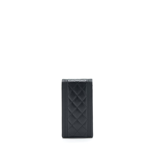 Chanel vertical boy flap phone case with chain caviar black with LGHW