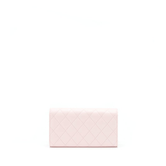 Chanel 22S detailed logo flap long wallet caviar light pink with LGHW