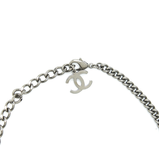 Chanel 21A metal plate and crystal necklace brushed LGHW