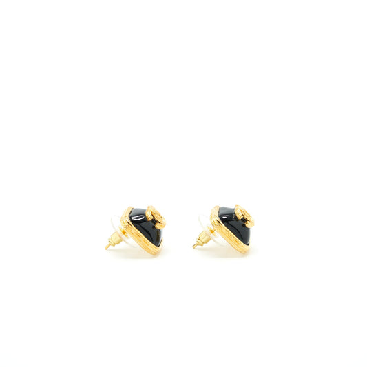 Chanel square with CC logo earrings black and Gold tone