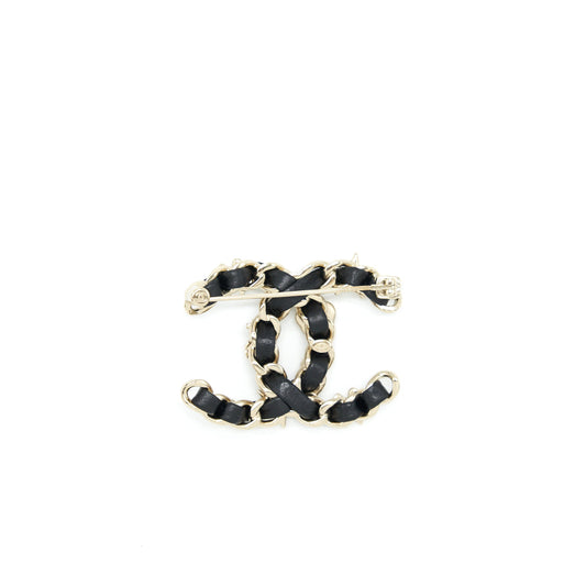Chanel 22S CC Logo Chain Brooch With Charm Black LGHW