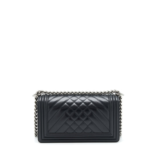 Chanel Medium Boy Bag Quilted And Chevron Calfskin Black SHW
