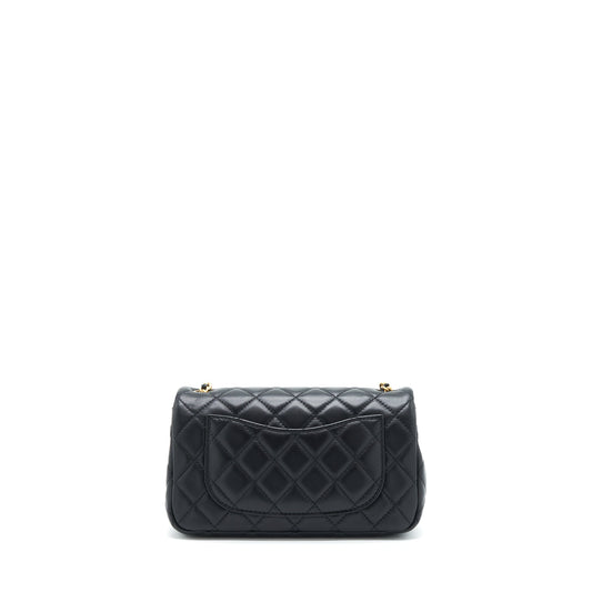 Chanel Mini Square Flap Bag Lambskin Black LGHW (Microchip)