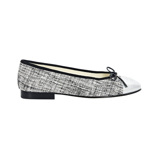 Metallic Silver Chanel Tweed Cap-Toe Ballet Flats