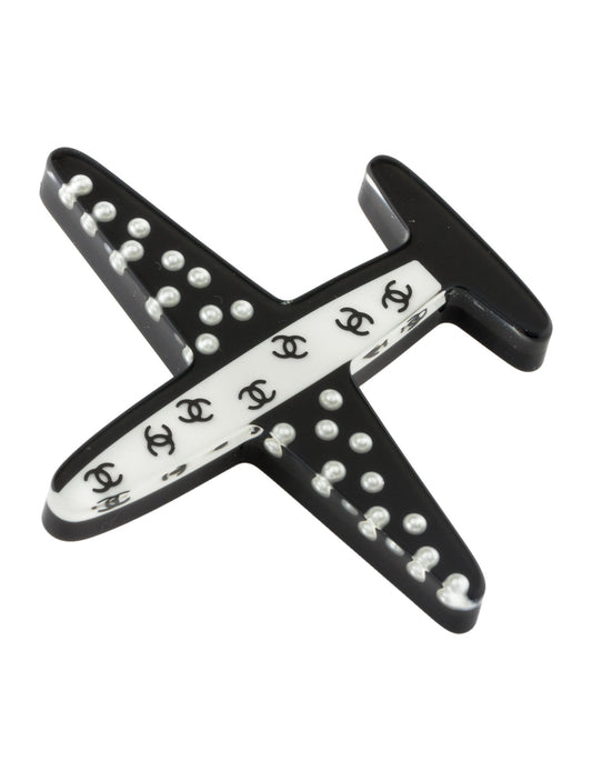 CHANEL Faux Pearl & Resin CC Airplane Brooch