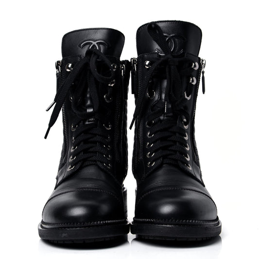 Chanel CC Leather Shearling-Trimmed Ankle Booties