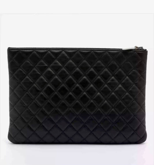CHANEL Quilted Lambskin Large O-Case Pouch