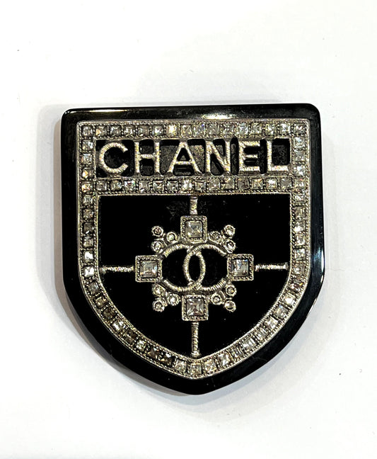 CHANEL CC Crystal Crest Shield Armor Brooch