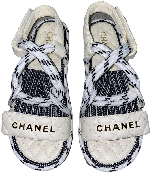 Chanel 20S Cord Lambskin Quilted Logo Sandals