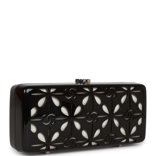 Chanel Minaudiere Box Clutch Black Acrylic Silver Hardware