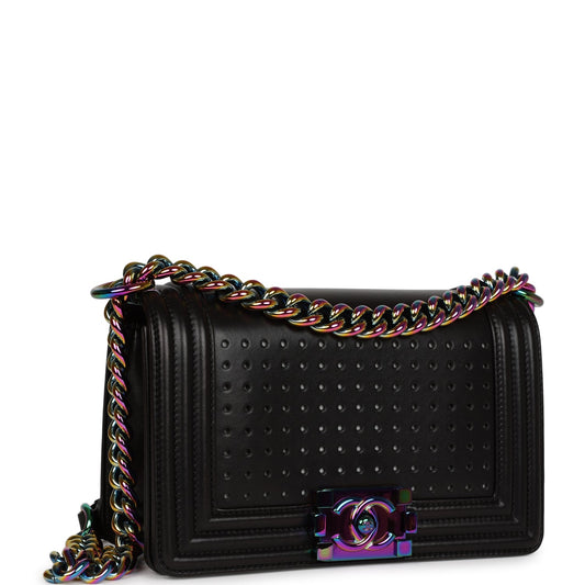 Chanel LED Small Boy Bag Black Lambskin Rainbow Hardware