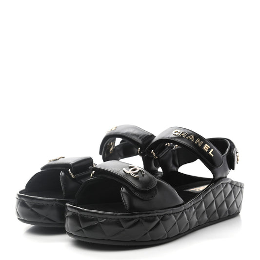CHANEL Metallic Calfskin Braided Thong Sandals