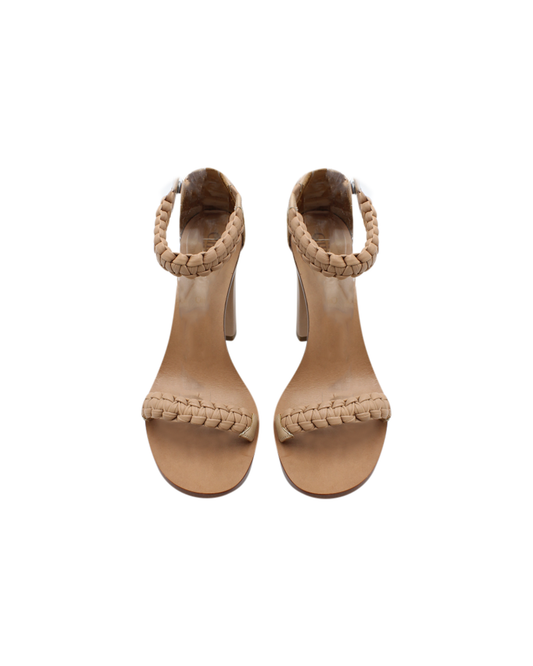 Chloe Macrame Straps High Heel Sandals in Beige Leather