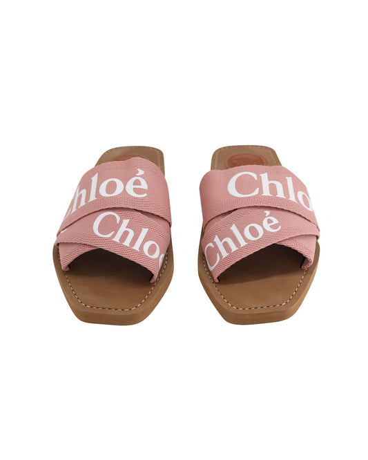 Chloe Logo Straps Woody Flats in Pink Canvas