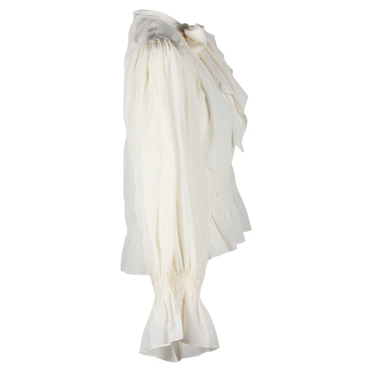 Chloe Pussybow Ruched Blouse in Ecru Silk