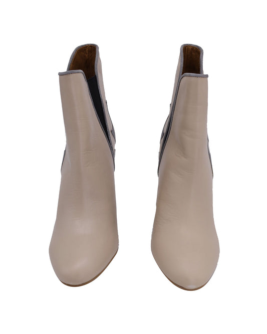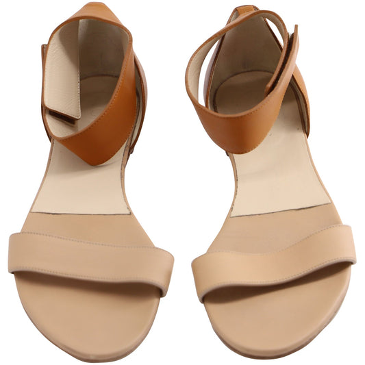 Chloe Bicolor Ankle Strap Flat Sandals in Nude Leather